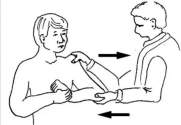 ①觸診法:患者取坐位,雙上肢自然下垂于體側(cè),檢查者用示指觸診患側(cè)肩峰突起和肱骨頭之間的距離,以其間可容納的橫指數(shù)表示脫位的程度。
